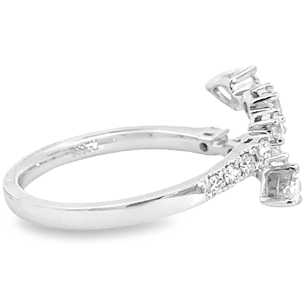 Unique bypass diamond fashion ring featuring pear and round brilliant cut diamonds